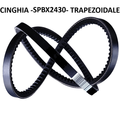 Cinghia di trasmissione SPBX 2430 dentellata. Questa scheda d'ordine presenta una cinghia trapezoidale dentellata con base minore rivolta verso l'i...