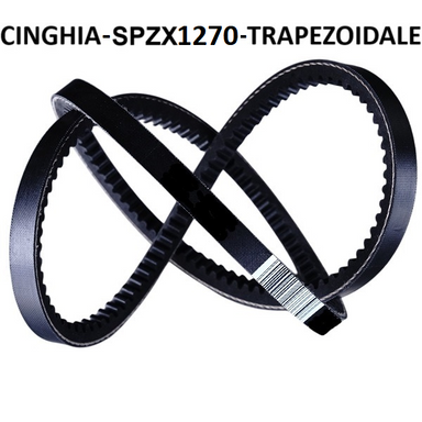 Cinghia di trasmissione SPZX 1270 dentellata. Questa scheda d'ordine presenta una cinghia trapezoidale dentellata con base minore rivolta verso l'i...