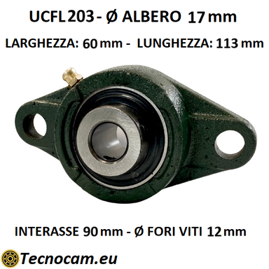 Supporto con cuscinetto e flangia in ghisa UCFL203. Questa scheda d'ordine presenta un supporto con cuscinetto di alta precisione per una trasmissi...