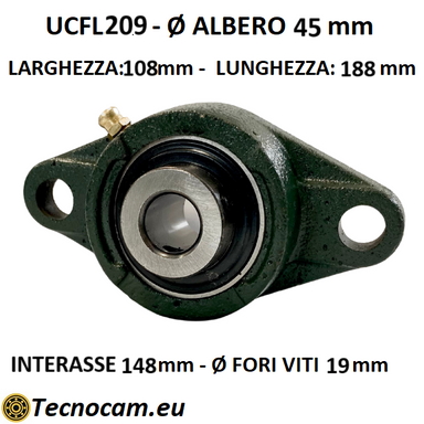 Supporto con cuscinetto e flangia in ghisa UCFL209. Questa scheda d'ordine presenta un supporto con cuscinetto di alta precisione per una trasmissi...