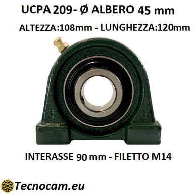 Supporto con cuscinetto e flangia in ghisa UCPA209. Questa scheda d'ordine presenta un supporto con cuscinetto di alta precisione per una trasmissi...