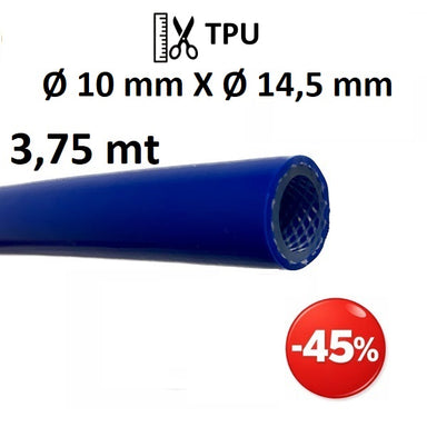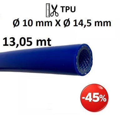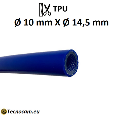 Tubo in TPU (poliuretano) Ø int. 10 mm Ø est. 14,5 mm con rinforzo in filato di poliestere ad alta tenacità. Applicazioni: Aria compressa, pneumati...