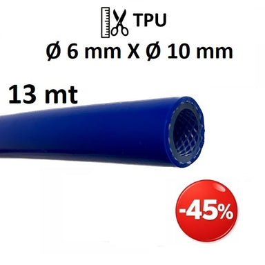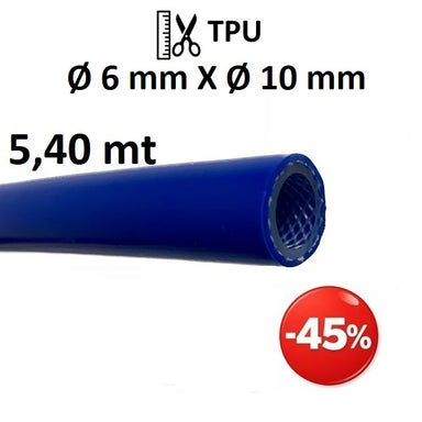 Tubo in TPU (poliuretano) Ø int. 6 mm Ø est. 10 mm con rinforzo in filato di poliestere ad alta tenacità. Applicazioni: Aria compressa, pneumatica,...