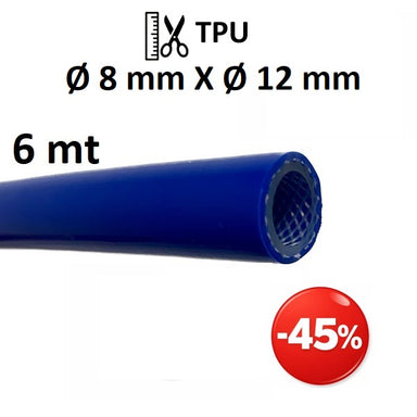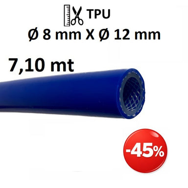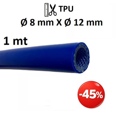 Tubo in TPU (poliuretano) Ø int. 8 mm Ø est. 12 mm con rinforzo in filato di poliestere ad alta tenacità. Applicazioni: Aria compressa, pneumatica,...