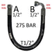 Flexibler Hydraulikschlauch mit maßgefertigten Edelstahl-Anschlüssen für Hochdruckanwendungen. Der Hydraulikschlauch hat einen Durchmesser von 1/2 Zoll und ist mit vorgepressten Anschlüssen ausgestattet. Anschlüsse und Klemmringe sind aus Edelstahl gefertigt, der Schlauch besteht aus NBR-Kautschuk mit zwei Stahlgeflechten. Maximaler Betriebsdruck: 275 bar. Die Details der Anschlüsse entnehmen Sie bitte den Fotos. Die gewünschte Länge wählen Sie bitte im Dropdown-Menü.