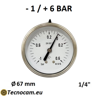 Manomètre à vide sec avec échelle de mesure de -1 à +0,6 bar. Ce manomètre est utilisé dans les secteurs industriel, civil ou agricole pour des ...