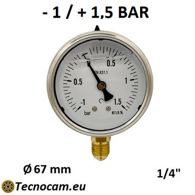 Manomètre à vide gradué de -1 à +1,5 bar, rempli de glycérine. Ce manomètre est utilisé dans les secteurs industriel, civil et agricole pour des...